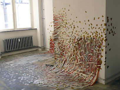 site specific installation in left corner adhesive tape group exhibition Linie curated by Elly Brose-Eiermann Galerie Elly Brose-Eiermann, Berlin/Germany 10.12.2008–10.01.2009