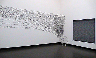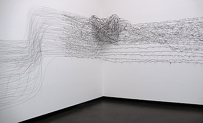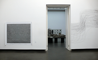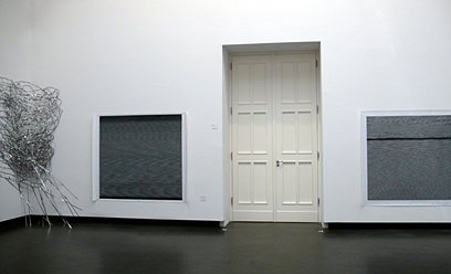 dual installation with Kelly Wood ephemeral installation with lead tape and graphite (black and white prints of binary codes by Kelly Wood) group exhibition Young Academy Academy of Arts, Berlin / Germany 17.05.–10.06.2009