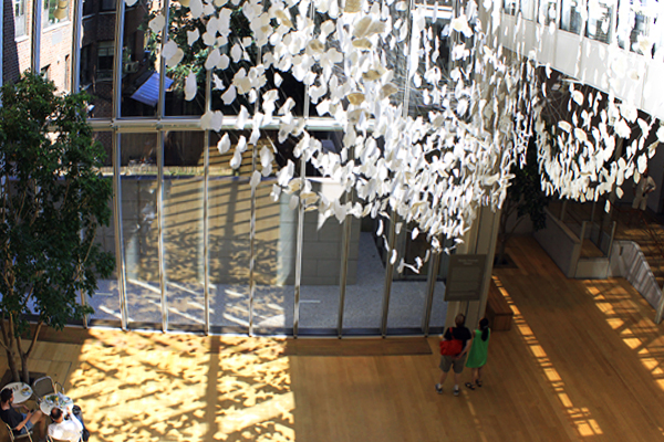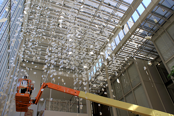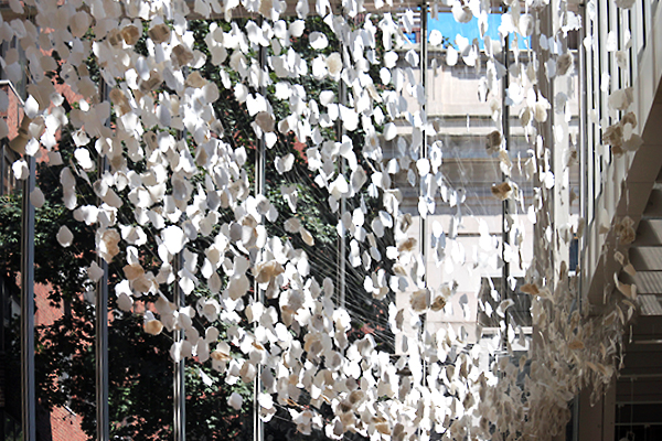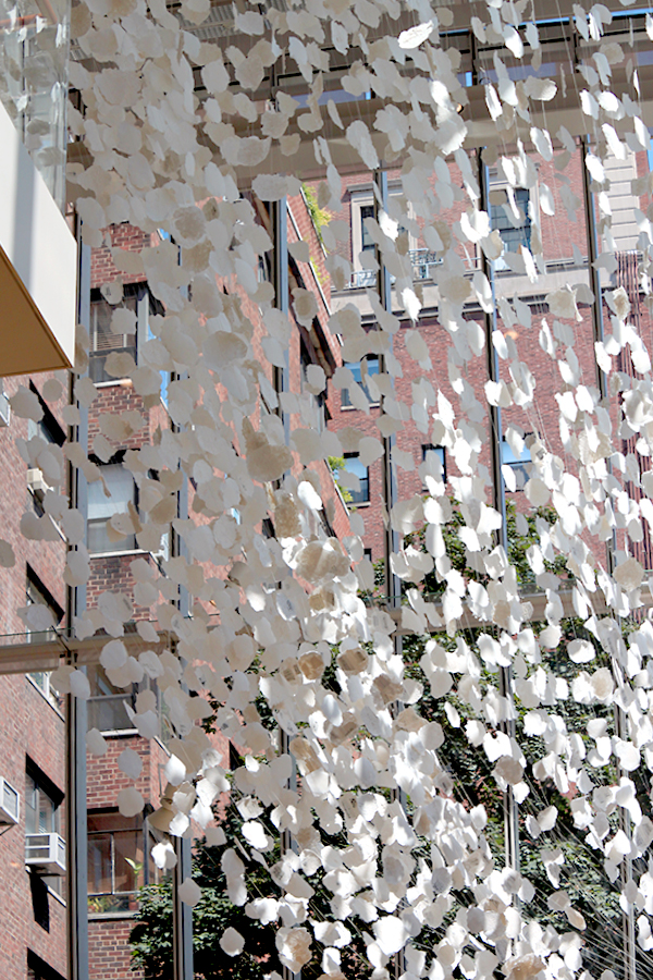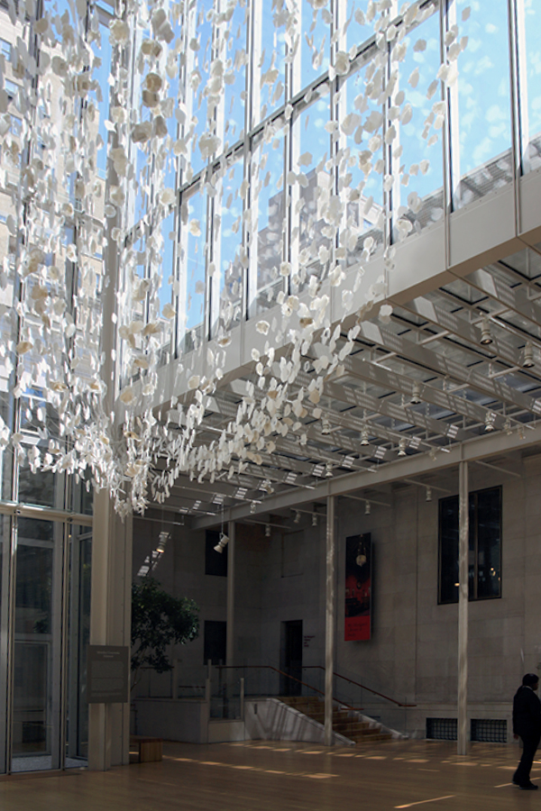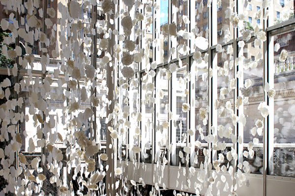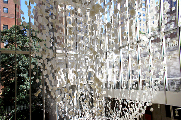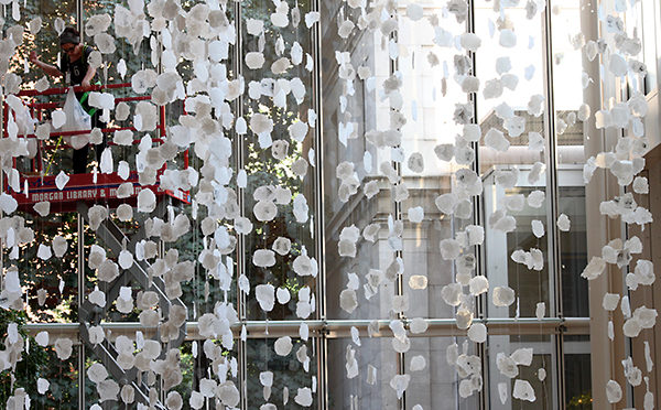 solo exhibition site specific installation for Summer Sculpture Series 5.000 sheets handmade paper, book binding yarn, copies of manuscripts The Morgan Library and Museum / Renzo Piano Extension New York/USA 19.07.–3.11.2013