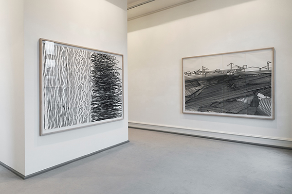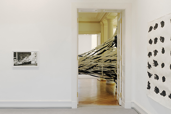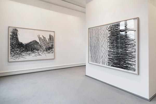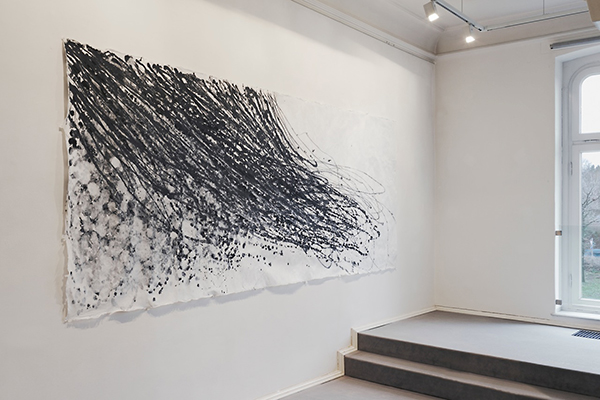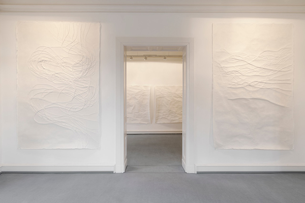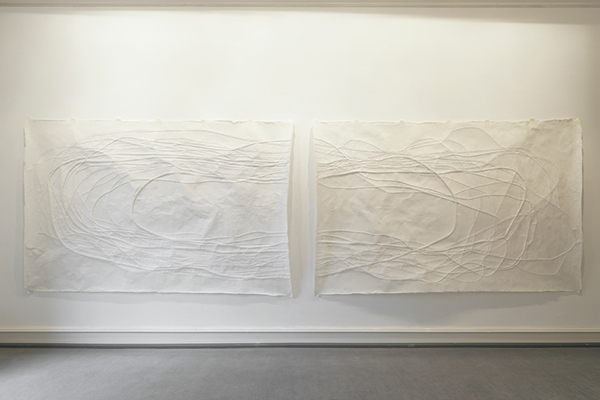 and Aerial fiber drawings, pulp paintings in handmade paper from the series Morph,